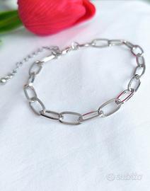 Bracciale catena, maglia allungata, unisex, chiusura con moschettone + prolunga.