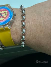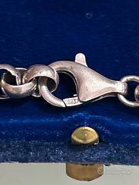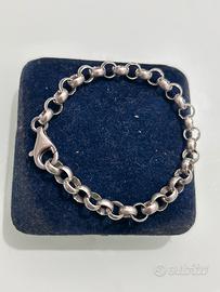 Bracciale usato a maglia rolo’. Può essere usato così com e’ oppure come base per charms. Pieno. Cm 17. Argento 925 naturale. No scatola.