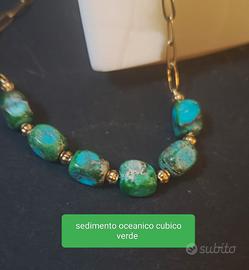 bracciale con catenella acciaio dorata pietre di sedimento oceanico cubico verde leggero, elegante, fatto a mano da me