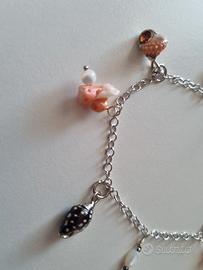 BRACCIALE - CAVIGLIERA CON CIONDOLI CONCHIGLIE E CORALLO argento 925 MISURA 17/18 cm. NUOVA IN OTTIMO STATO CHIUSURA A GANCIO