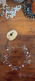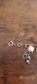 bellissimo bracciale/cavigliera in argento 925,chiusura adattabile,con perle di fiume,quarzo rosa e vetro sfaccettato.