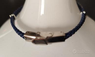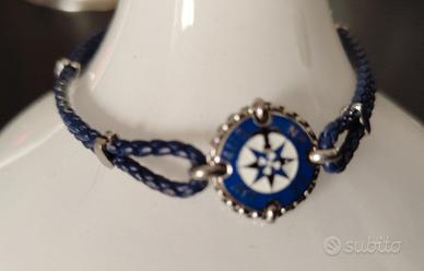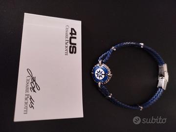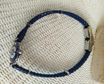 Bracciale Cesare Paciotti 4US in cordino blu con chiusura e dettagli in acciaio e charm dal design nautico con rosa dei venti, è corredato da garanzia ma manca la scatola originale, potrebbe essere un elegante set assieme alla collana.