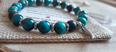 šµ Bracciale elastico uomo in Occhio di Tigre blu con cornetto portafortuna ā Chakra della gola