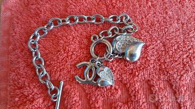 Bracciale Chanel donna in acciaio inox con accessori e inserti in strass colore argento design Chanel chiusura a perno LUNGHEZZA totale 22 LUNGHEZZA chiusura 18 Dichiaro che il prodotto è autentico e originale VISITATE ANCHE PER CURIOSITÀ GLI ALTRI MIEI ANNUNCI. Grazie