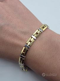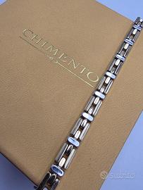 Bellissimo bracciale originale Chimento della collezione Double Classic in oro giallo e bianco 18 carati davanti e oro bianco dietro indossabile double face. Con un diamante naturale sulla chiusura.