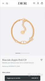 Salve, come da titolo vendo bracciale di Christian Dior (Metallo con finitura di color oro e cristalli bianchi). Nuovo, aperto solo per fare le foto.