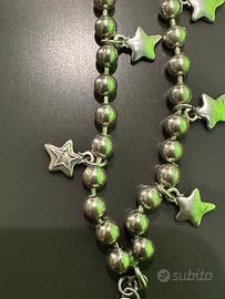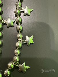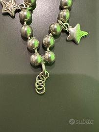 Bracciale Ciclon “Buona Fortuna “ in metallo anallergico argentato a due fili composto da sferette con charms a forma di stella.