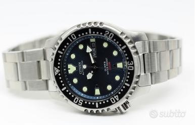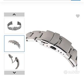 nuovo imballato con pellicole, mai indossato.Questo è un braccialetto Islander che è per il Citizen Promaster Automatic Dive Watch, a partire dal numero di modello NY0040. Il dimensionamento viene eseguito con viti (non perni). Ci sono tre fori nella chiusura deployante a forbice fresata per regolazioni fini. I collegamenti finali sono solidi e curvi. Le barre a molla in acciaio inossidabile sono incluse. I collegamenti finali sono negativi, il che significa che si articolano al collegamento finale per un migliore adattamento ai polsi più piccoli. Il bracciale si conica da 20 mm all'aletta a 16 mm alla chiusura. Prezzo 60€+spedi.