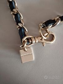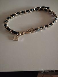 Elegante bracciale Coccinelle da donna con cinturino in cuoio nero intrecciato e catena color oro.
