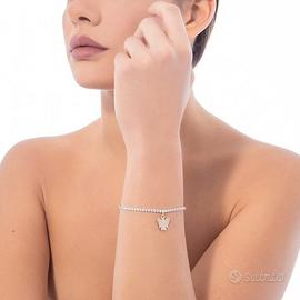Bracciale con angelo charm in argento rosato e zirconi bianchi.