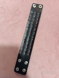 Bracciale con borchie rosso/nero, punk/rock, chiusura a bottone regolabile Lunghezza fino al primo bottone 19 cm Lunghezza fino all'ultimo bottone 21,5 cm Larghezza 3,8 cm Nuovo
