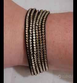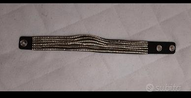 bracciale nero con brillantini chiari e con bottone di chiusura brillantino