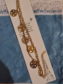 elegante bracciale con charm logo Tory Burch in acciaio inossidabile