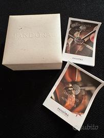 Bracciale Pandora in argento sterling 925 misura 19 con chiusura a barilotto 9 charms, 2 clip distanziatori, catenina di dicurezza, scatola e garanzia Pandora.