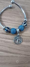 Bracciale con ciondoli blu e ciondolo centrale con albero della vita