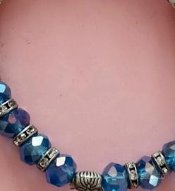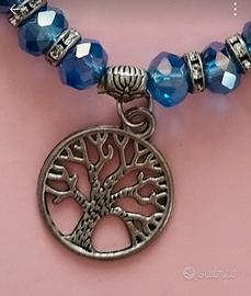 Bracciale in pietra dure con ciondolo albero della vita. Pietro colore blu e bianco con strass.