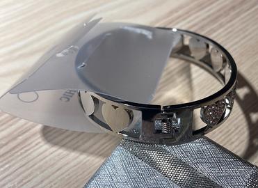 Bracciale con cuori, metà sono ricoperti di brillantini. Chiusura a molla, tutto in perfette condizioni e ancora con targhetta originale.