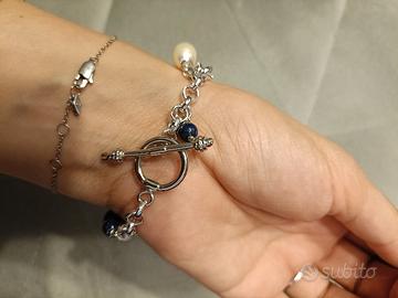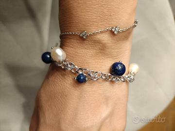 leggerissimo bracciale con chiusura tbar in perle di fiume e lapislazzuli. nuovo, mai indossato, artigianale