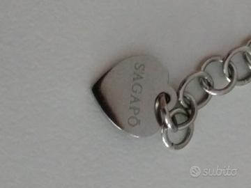Bracciale S'Agapó sottile color argento con punto luce e cuoricino con lettera C.