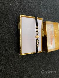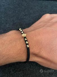 Bracciale con oro 18K e cordino nero regolabile