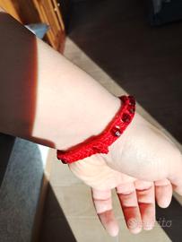 Bracciale fatto a mano con filo di cotone rosso e perline. - Perline rosse. - Lettera iniziale D inclusa.