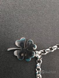bracciale color argento con charm a forma di quadrifoglio con un brillantino.