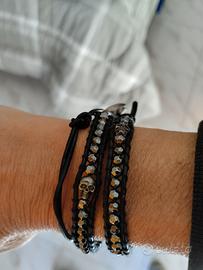 Bracciale in caucciù nero con chiusura a bottone. Un modello particolare con teschietti non solo per abbigliamento sportivo.