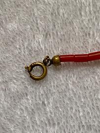 Bracciale in vero corallo rosso unisex a piccoli tronchetti naturali.