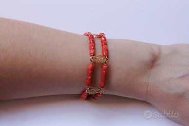 Grazioso bracciale in Corallo rosso Sardo sfaccettato con elementi filigrana e montatatura interamente in oro 750 (18 K). Bellissima e particolare lavorazione artigianale. Articolo in ottimo stato, praticamente nuovo. Per ulteriori info contattare.