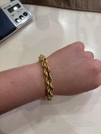 Eleganza urbana e dettagli preziosi: questo bracciale in argento 925 placcato in oro 18kt è un must per chi ama distinguersi con stile. La sua lavorazione a corda dona un tocco deciso ma raffinato, perfetto da indossare ogni giorno o per completare un outfit street-chic.