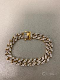 Bracciale cuban in argento pieno 925 con placcatura di alta qualita’ in oro 18kt Pietre moissanite Nuovo