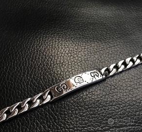 GUCCI Bracciale da coppia in argento sterling con teschio di elfo e catena cubana, unisex, argento 925 Misura: 19 cm