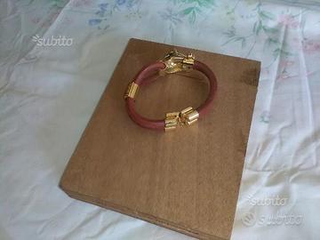 Bracciale in Cuoio e Metallo placcato color oro rosso...raffigurante un giaguaro...chiusura a scatto... nuovo mai indossato...