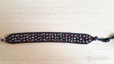 Bracciali realizzati in cuoio nero annodato 3 file di cristalli colorati 2 versioni: