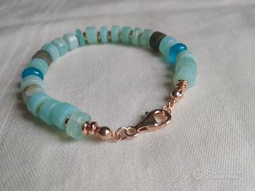Bellissimo bracciale da donna realizzata con pietre dure e preziose di aqua marina , agata blu, labradorite.