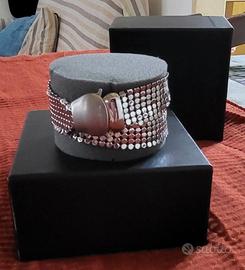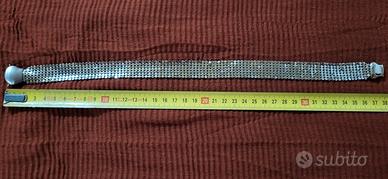 Bracciale in acciaio anallergico a giro doppio, misura media. Misura complessiva 37cm; lavorazione maglia morbida con chiusura a scatto.