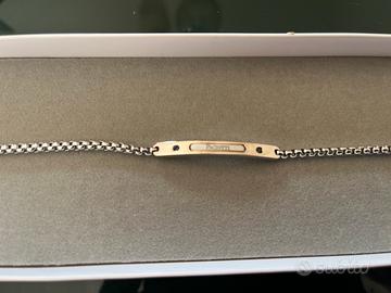 Bracciale da uomo in acciaio con targhetta come da foto, lunghezza 20cm, chiusura a papoagallo , completo di scatola originale.