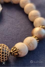 Bracciale elastico di perle di AULITE sabbia sfera centrale con strass, 2 perle cotton oro. distanziatori e coppette in ottone anticato.