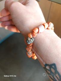 bracciale di corallo antico naturale grezzo montato su solo filo di cotone