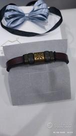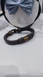 Vendo bracciale di cuoio modello da uomo completo di confezione originale di gioielleria causa doppio regalo, inutilizzato, perfetto per un 18esimo o regalo di compleanno.