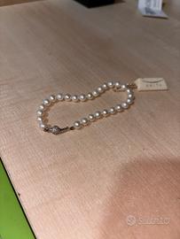 Elegante bracciale di perle naturali della collezione Seta by Akita e chiusura in oro bianco 18 kt con dettaglio in diamanti, come riportato nel certificato di garanzia internazionale incluso. Comprende: scatola originale, certificato di garanzia internazionale autenticato, targhetta originale Akita. • Dettagli tecnici: Diametro perle circa 6-6,5 mm.