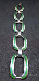 Bracciale donna 1AR UNOAERRE argento 925 dettagli verdi, nuovo, mai indossato - giacenza cessata attività anin 70 80 Peso 33 g, lunghezza 18cm ca.