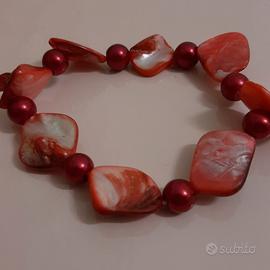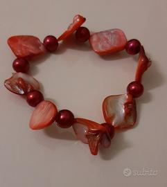 Bracciale composto da filo elastico, perline e pietre dure di madreperla,dal color rosso e dalla forma irregolare. Ottimo stato. Spedizione con modalità Posta 1 extra standard.