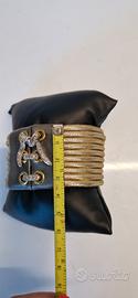 Bracciale alla Schiava – Ultralight Collection Raffinato, leggero e ricco di dettagli preziosi. Questo bracciale artigianale è un pezzo unico, realizzato a mano con materiali di alta qualità: ✨ Fili in ecopelle avvolti da una fine rete in Argento, con placca centrale in Argento brunito che dona carattere e profondità. ✨ Dettaglio esclusivo: fiocco in Oro 9 ct con Diamanti Brown per un totale di 0,80 ct, luminosi e ricercati. ✨ Ogni componente è creato con cura maniacale, rendendo questo gioiello una vera opera d’arte contemporanea. Il bracciale viene fornito con Custodia e Garanzia, a scelta tra: ▪️ elegante cassettino nero ▪️ cofanetto artigianale in legno Perfetto per un regalo importante o per chi ama indossare accessori unici e sofisticati. Visionabile a Roma su appuntamento