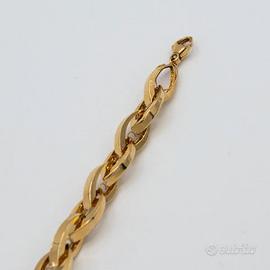 Bracciale donna in oro giallo 18 kt grammi 12,9 lungo cm. 20+2. La lavorazione è lucida e a maglie ovalizzate e scatolate che si intersecano tra loro. E’ possibile vere anche il girocollo che unito insieme al bracciale formano una collana lunga molto importante e di grande effetto. Prodotto made in Italy munito di marchio di fabbrica come da legge e completo di confezione e certificato di qualità rilasciato dalla Gioielleria.