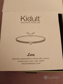 Bracciale Donna in acciaio 316L con tennis di cristalli rosa e viola. Lunghezza regolabile da 16 a 25 cm