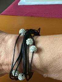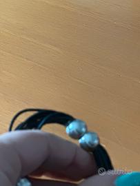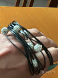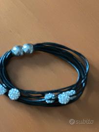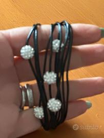 Bracciale in pelle e strass color argento. Chiusura con calamita.