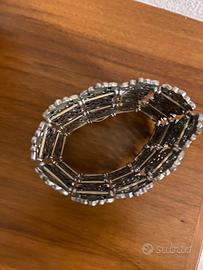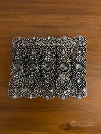 Bracciale a fascia in metallo anticato con pietre e brillantini. Molto versatile ed elegante.