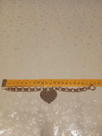 Bracciale acciaio , colore oro, a catena con ciondolo cuore con nomi di città. Mai indossato