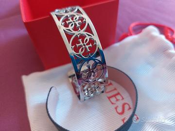 Vendo bracciale donna Guess usato 1 volta. Praticamente nuovo. Bracciale rigido con possibilità di inserire inserto in pelle nero/rosa
